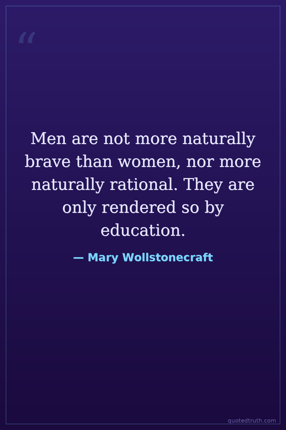 Men are not more naturally brave than women, nor more naturally rational. They are only rendered so by education.