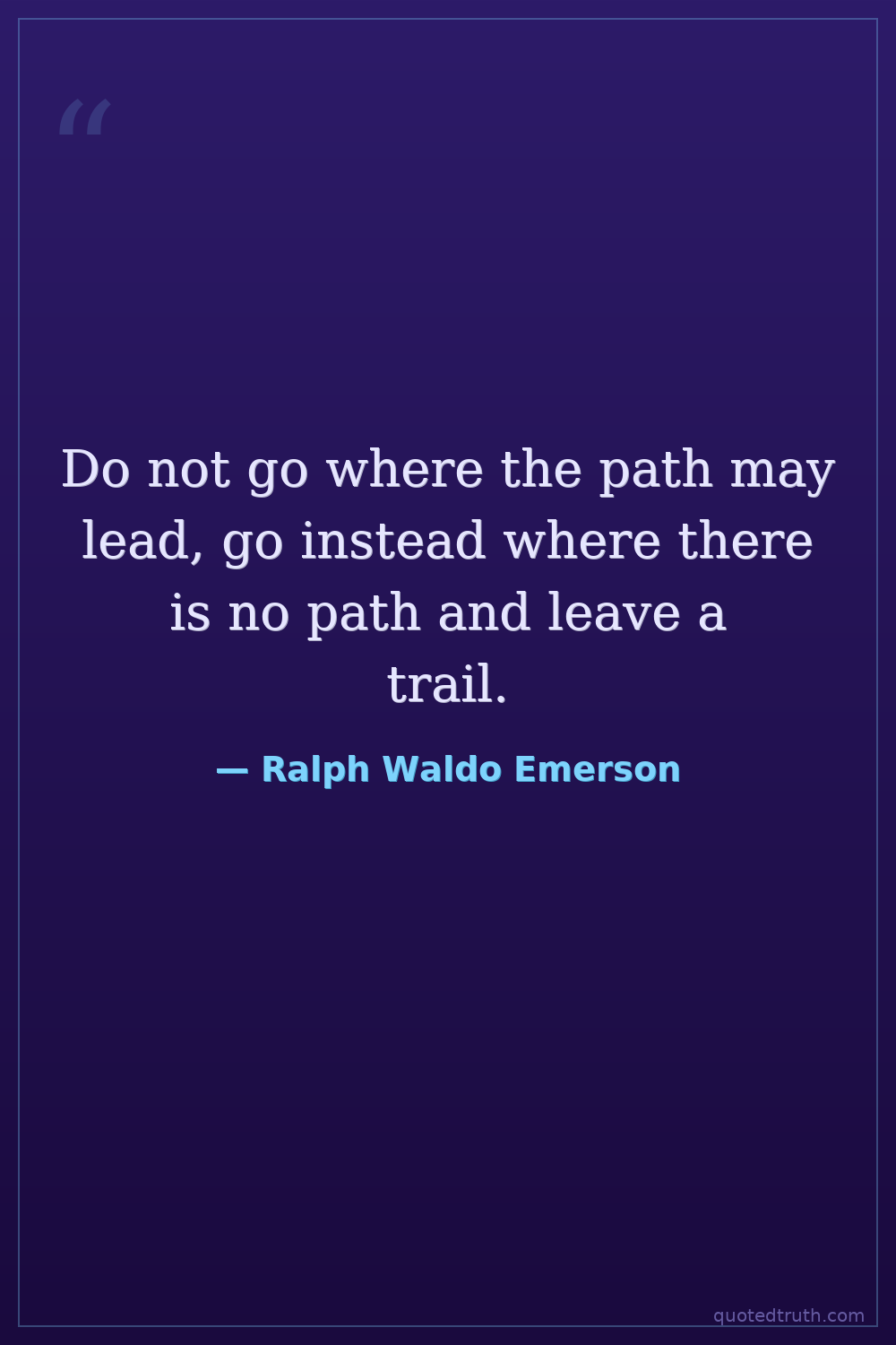 Do not go where the path may lead, go instead where there is no path and leave a trail.