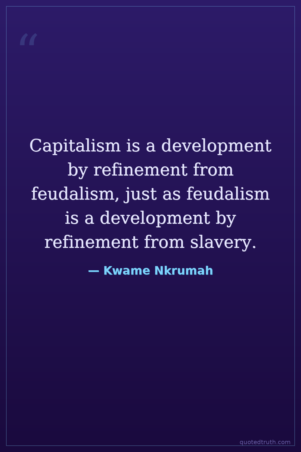 Capitalism is a development by refinement from feudalism, just as feudalism is a development by refinement from slavery.