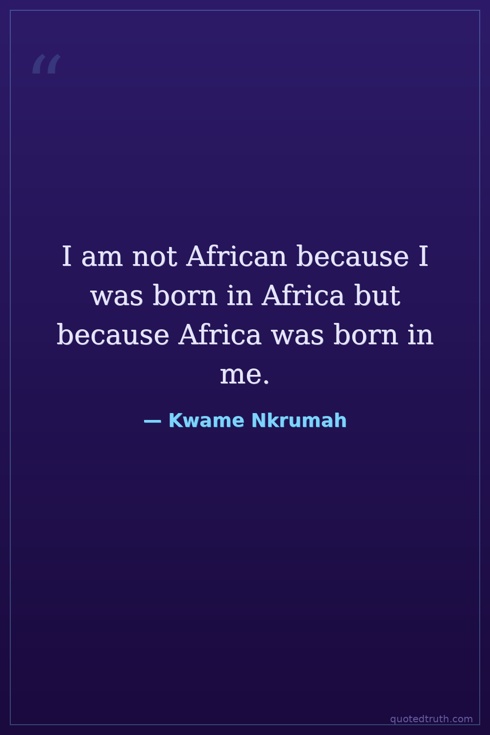 I am not African because I was born in Africa but because Africa was born in me.