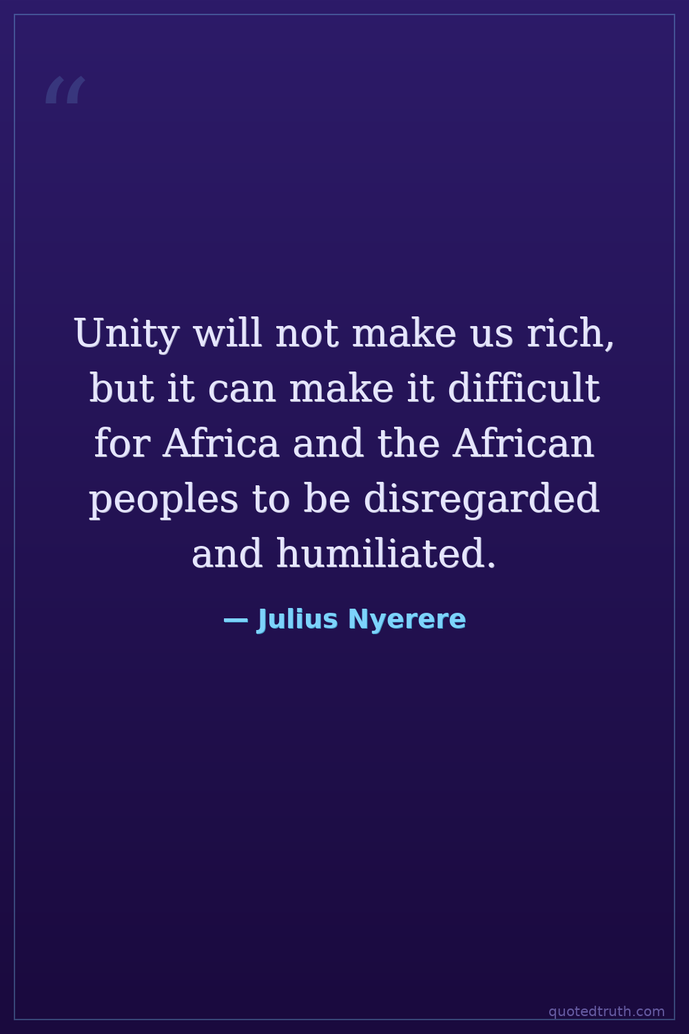 Unity will not make us rich, but it can make it difficult for Africa and the African peoples to be disregarded and humiliated.