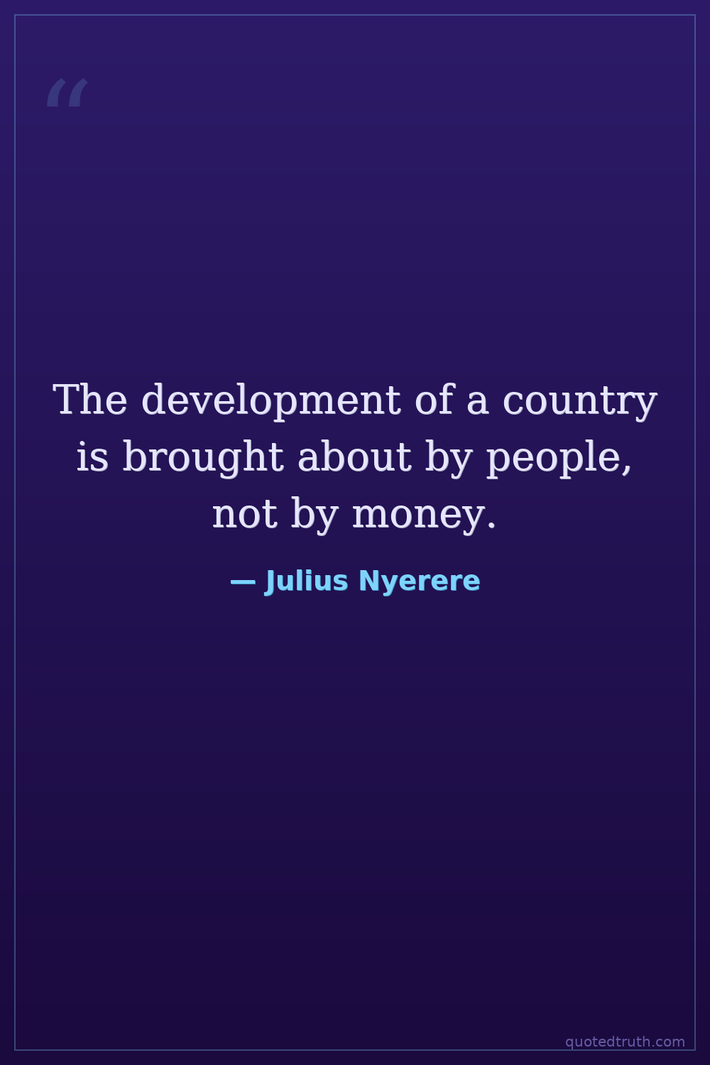 The development of a country is brought about by people, not by money.