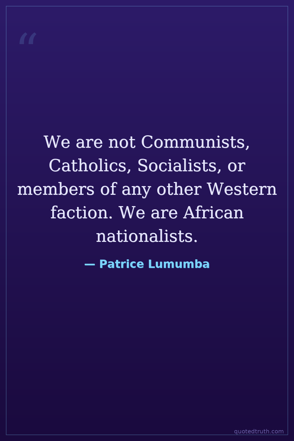 We are not Communists, Catholics, Socialists, or members of any other Western faction. We are African nationalists.