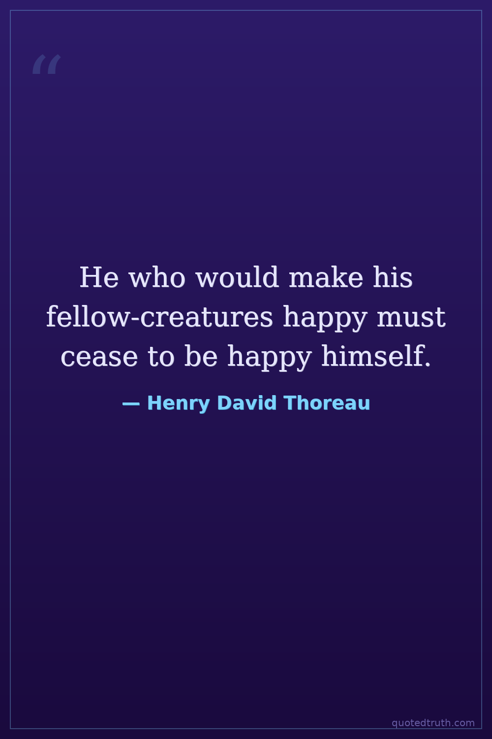This is likely a misattribution or a misinterpretation of his work. Thoreau generally advocated for individual happiness and self-reliance, not self-sacrifice for the happiness of others in this manner.