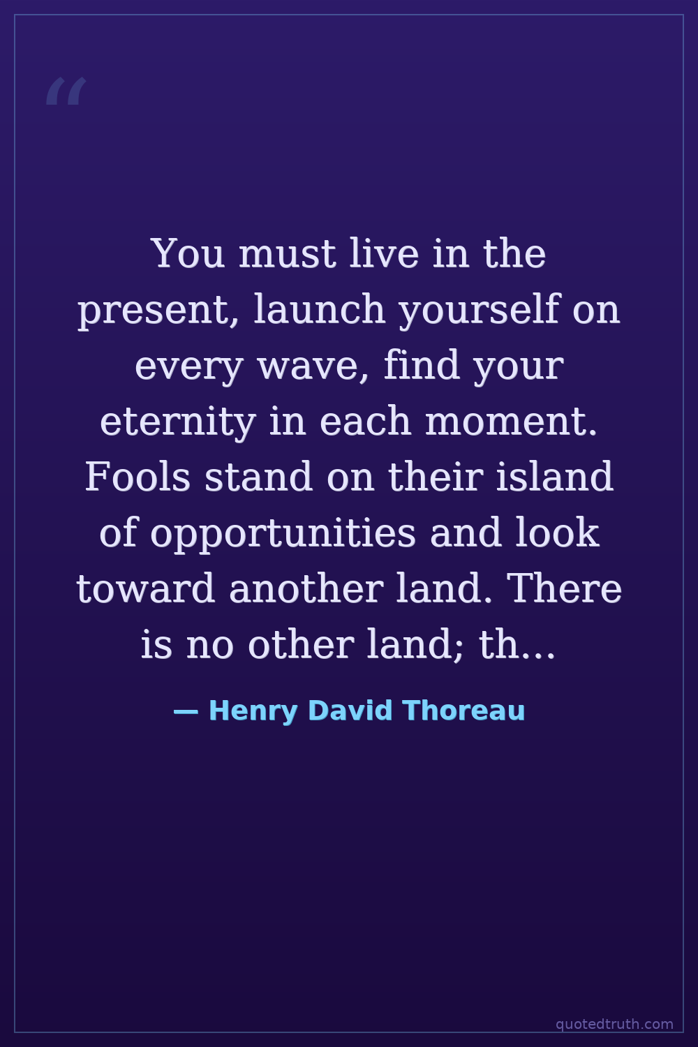 You must live in the present, launch yourself on every wave, find your eternity in each moment. Fools stand on their island of opportunities and look toward another land. There is no other land; there is no other life but this.