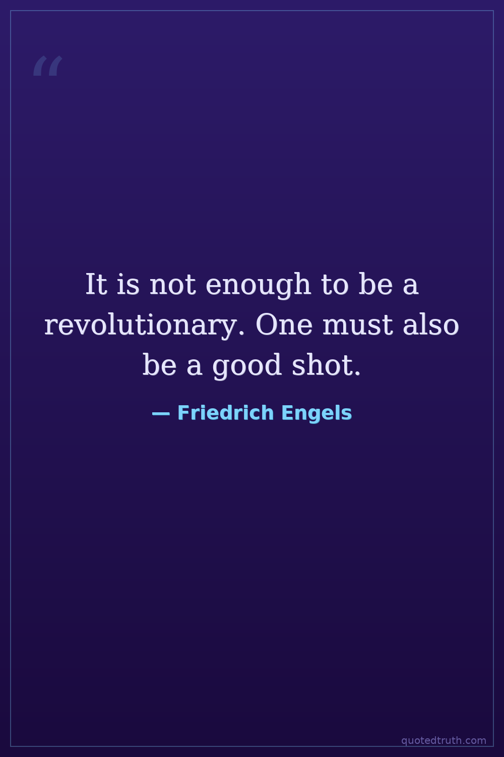 This quote is widely attributed to Engels, particularly in revolutionary circles, but its exact source or context is difficult to pinpoint in his published works. It may be an apocryphal saying or from a less accessible private letter.