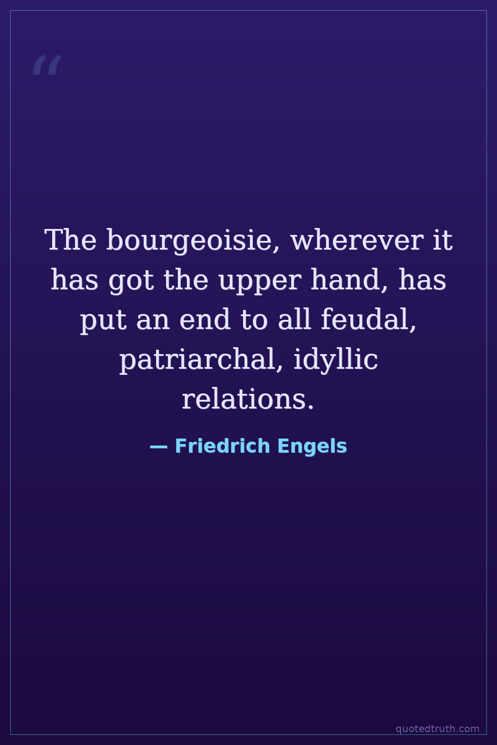 The bourgeoisie, wherever it has got the upper hand, has put an end to all feudal, patriarchal, idyllic relations.