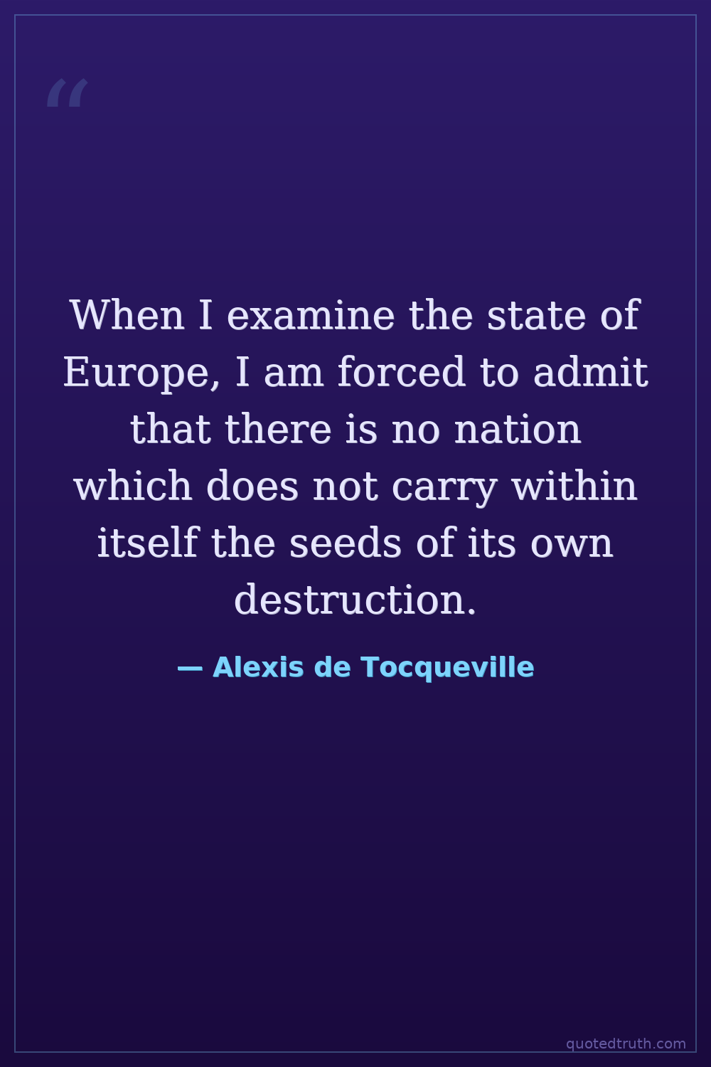 When I examine the state of Europe, I am forced to admit that there is no nation which does not carry within itself the seeds of its own destruction.