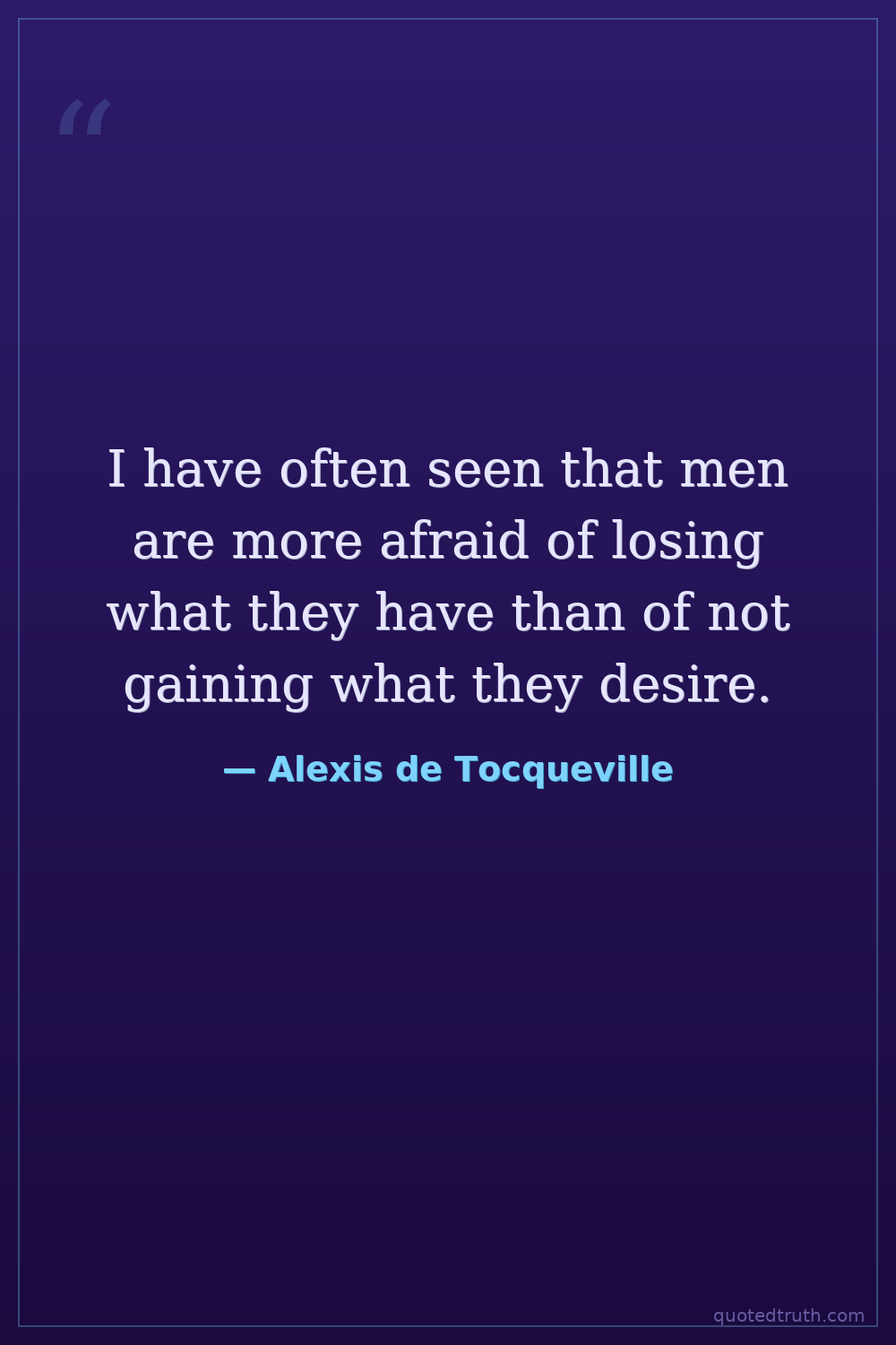 I have often seen that men are more afraid of losing what they have than of not gaining what they desire.