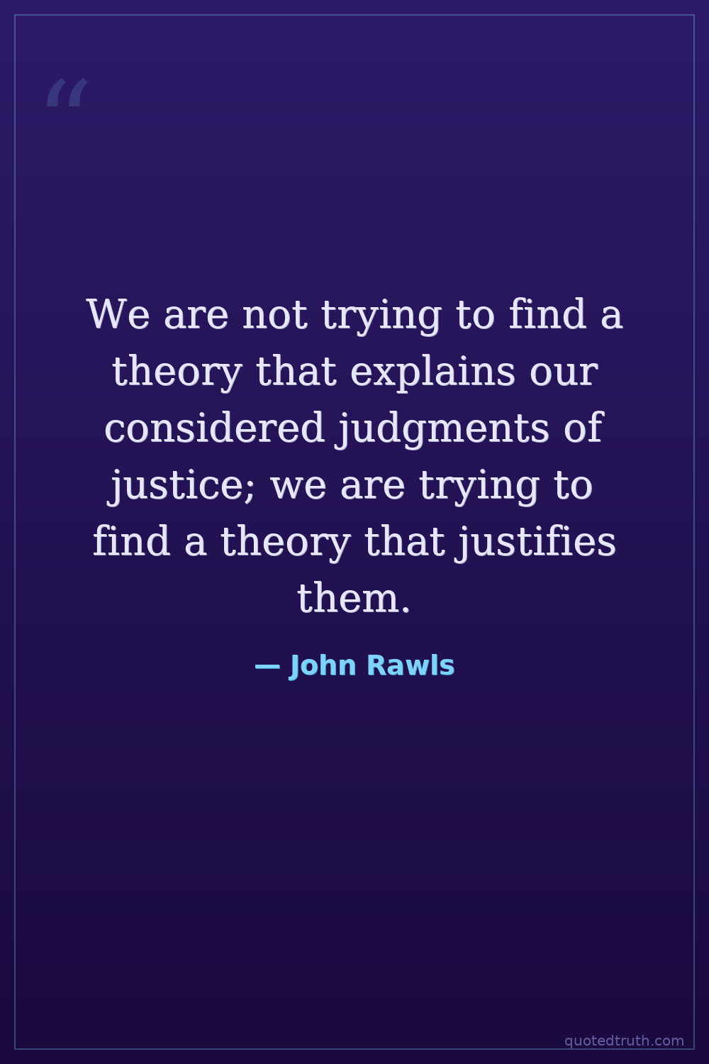 We are not trying to find a theory that explains our considered judgments of justice; we are trying to find a theory that justifies them.