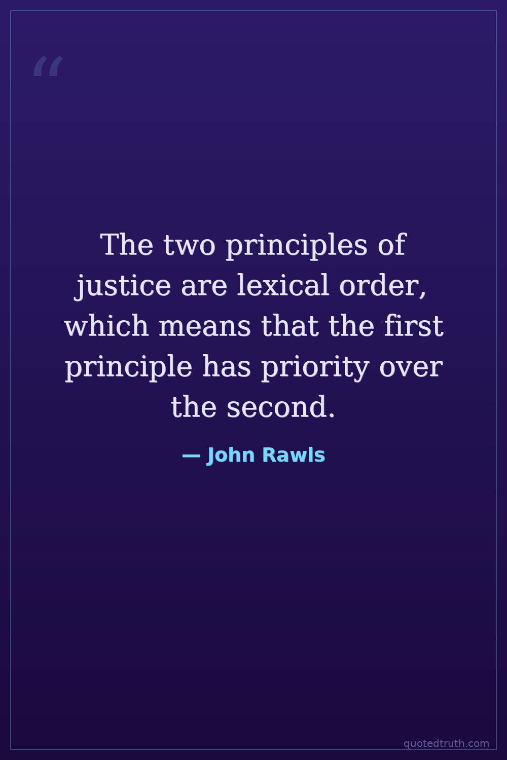 The two principles of justice are lexical order, which means that the first principle has priority over the second.