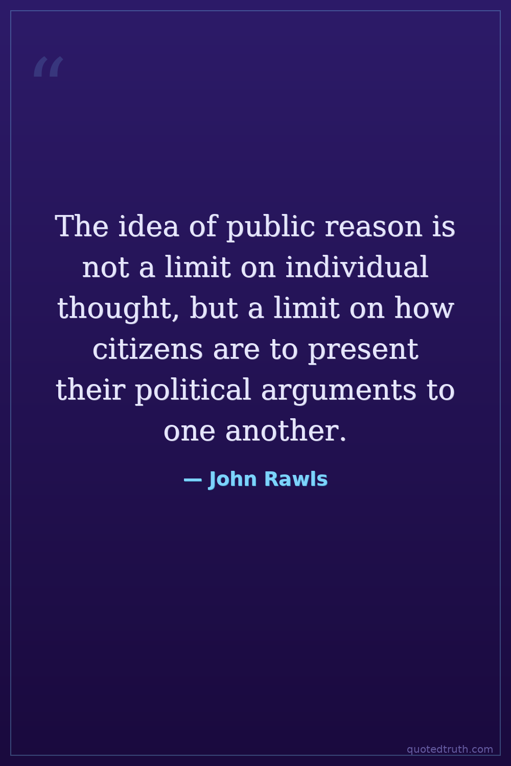 The idea of public reason is not a limit on individual thought, but a limit on how citizens are to present their political arguments to one another.