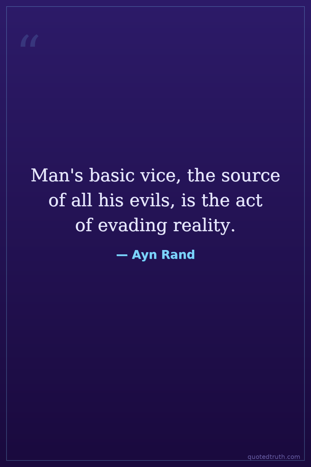 Man's basic vice, the source of all his evils, is the act of evading reality.