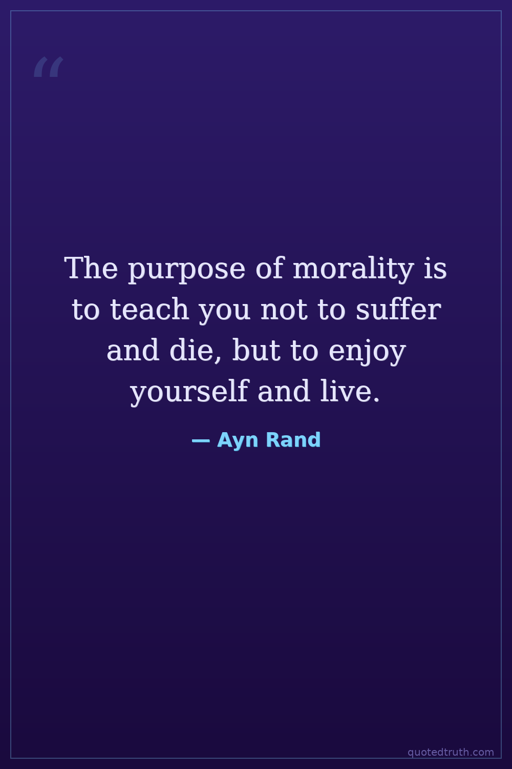 The purpose of morality is to teach you not to suffer and die, but to enjoy yourself and live.