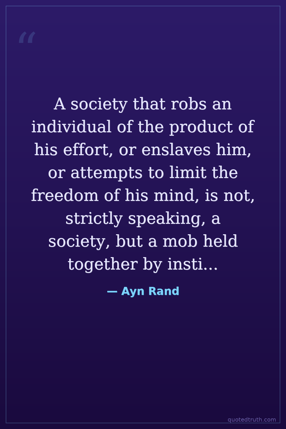 A society that robs an individual of the product of his effort, or enslaves him, or attempts to limit the freedom of his mind, is not, strictly speaking, a society, but a mob held together by institutionalized gang-rule.
