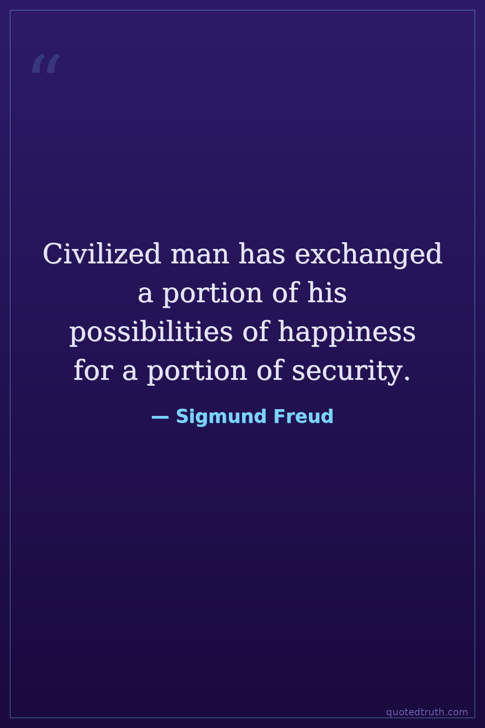 Civilized man has exchanged a portion of his possibilities of happiness for a portion of security.