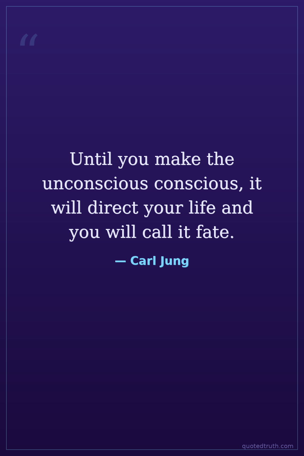 Until you make the unconscious conscious, it will direct your life and you will call it fate.