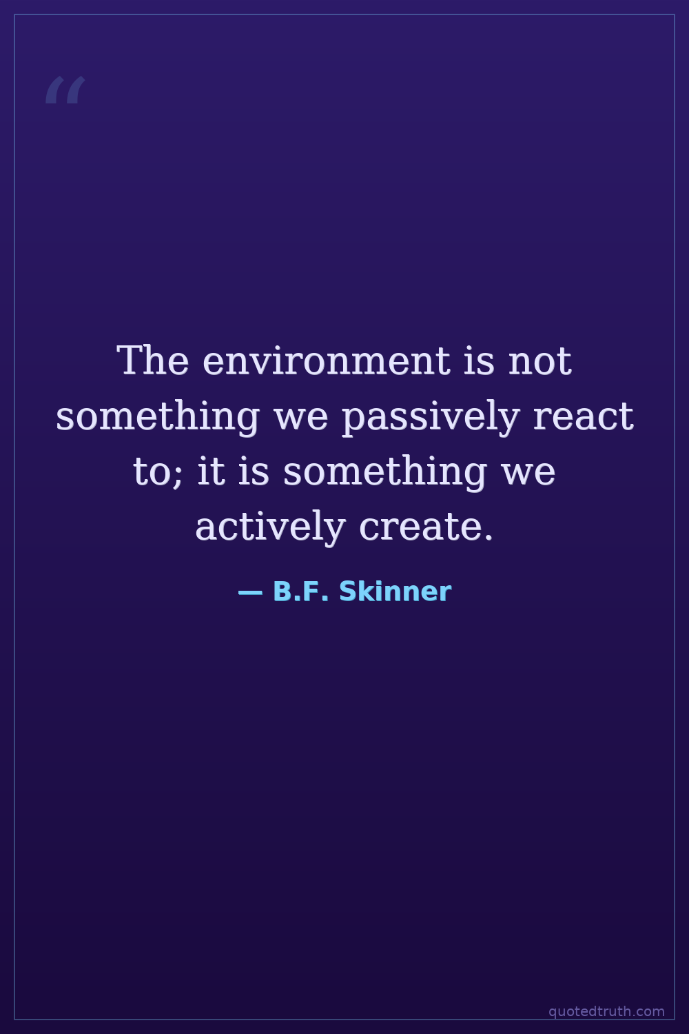 The environment is not something we passively react to; it is something we actively create.