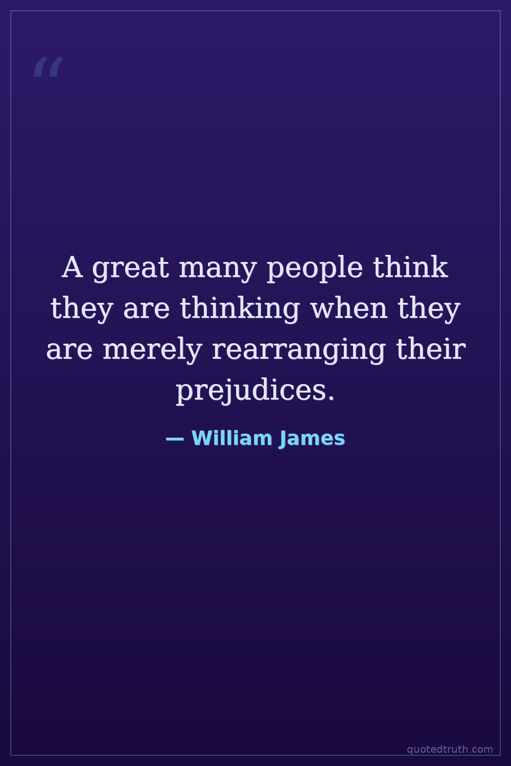 A great many people think they are thinking when they are merely rearranging their prejudices.