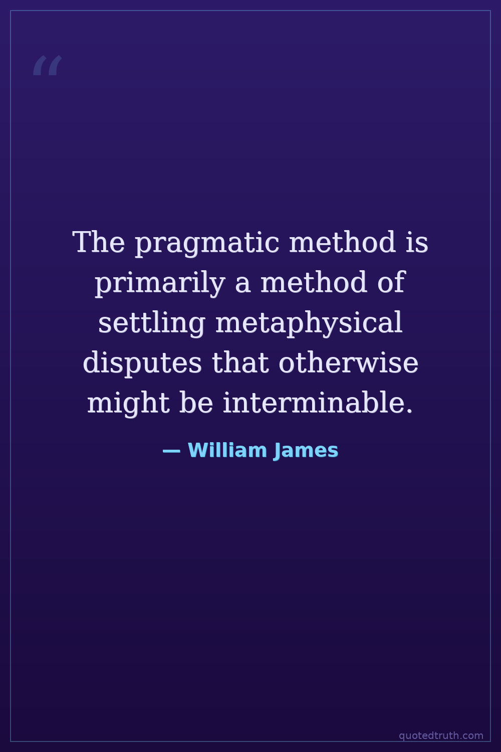 The pragmatic method is primarily a method of settling metaphysical disputes that otherwise might be interminable.
