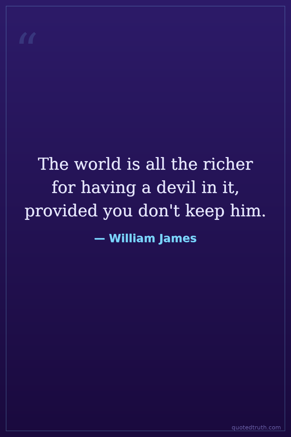 The world is all the richer for having a devil in it, provided you don't keep him.