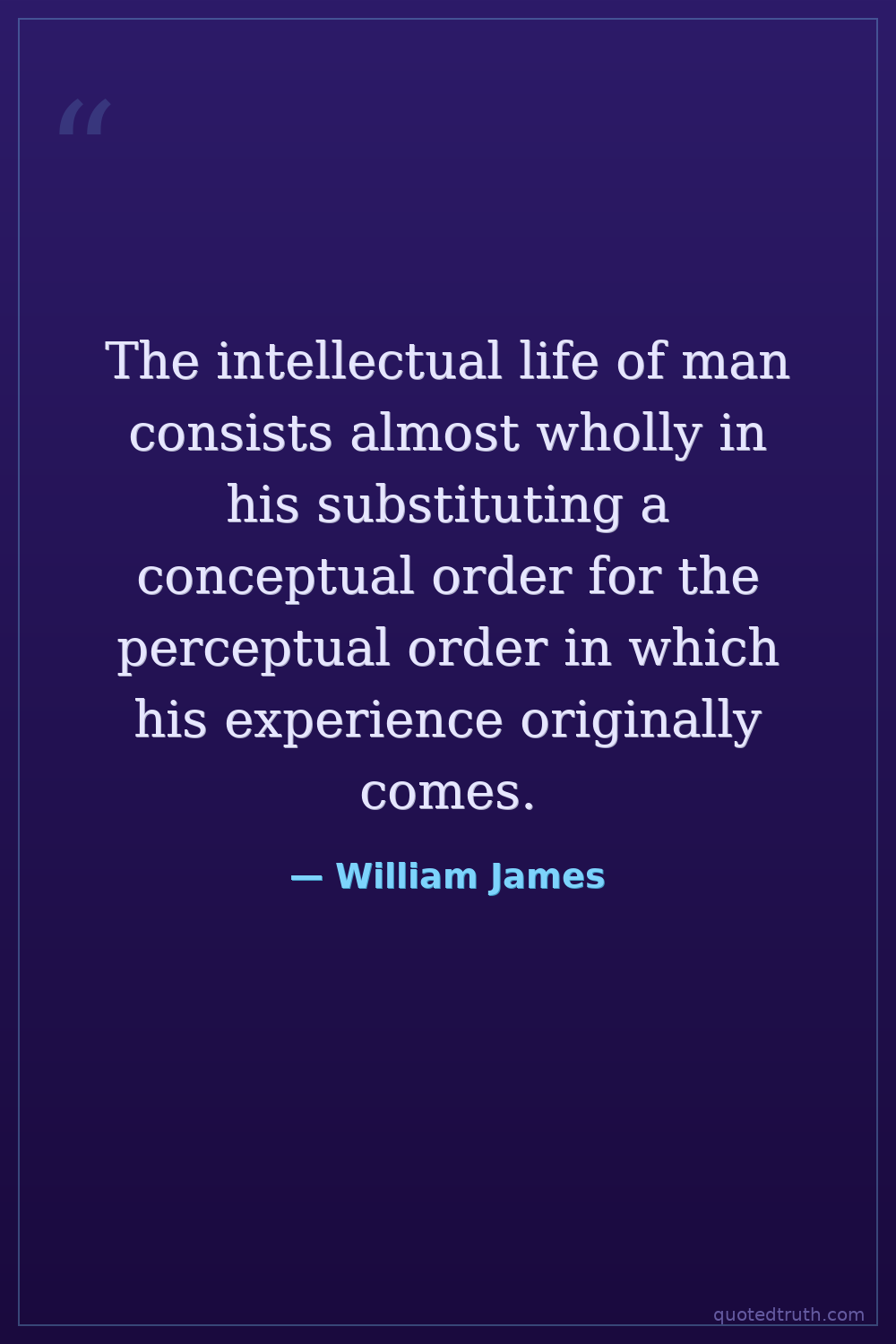 The intellectual life of man consists almost wholly in his substituting a conceptual order for the perceptual order in which his experience originally comes.