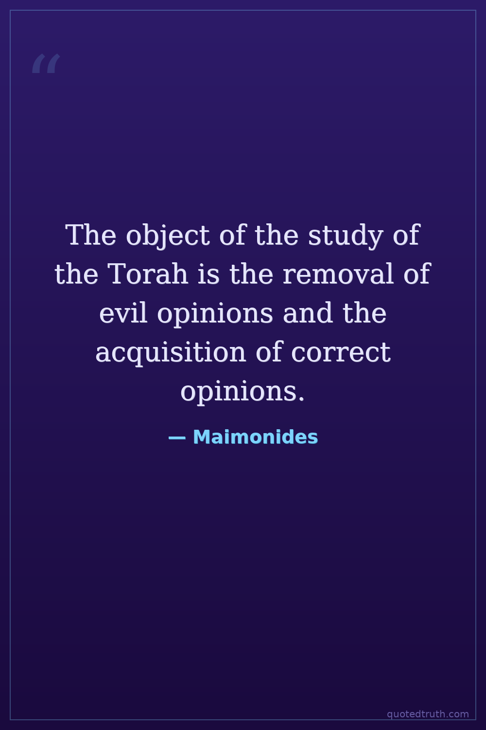 The object of the study of the Torah is the removal of evil opinions and the acquisition of correct opinions.
