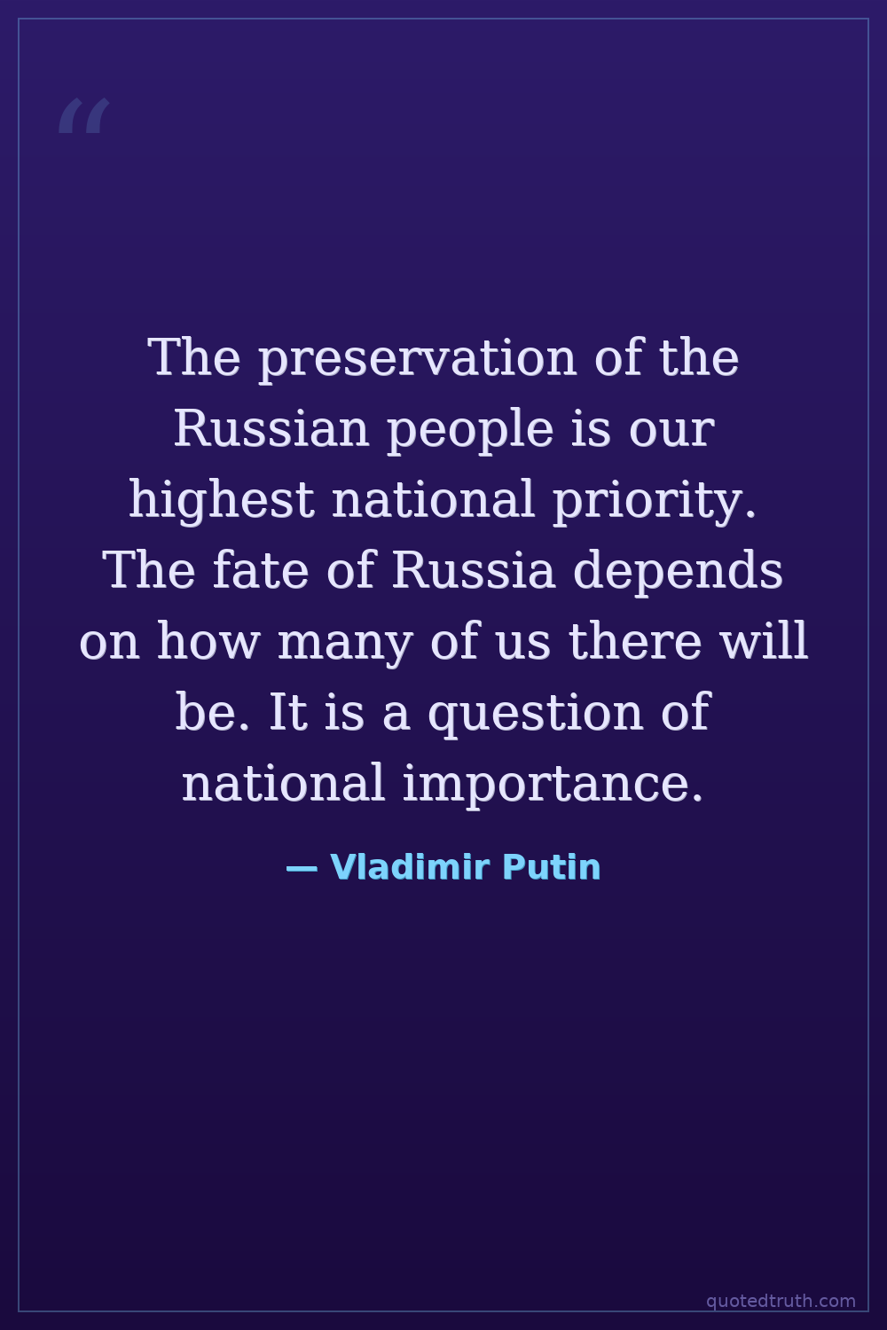 The preservation of the Russian people is our highest national priority. The fate of Russia depends on how many of us there will be. It is a question of national importance.