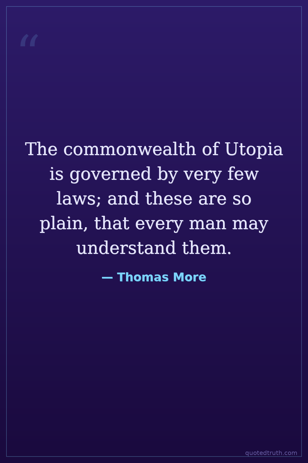 The commonwealth of Utopia is governed by very few laws; and these are so plain, that every man may understand them.