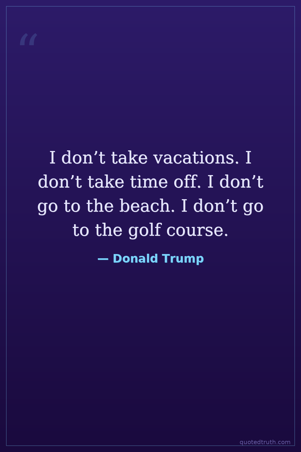 I don’t take vacations. I don’t take time off. I don’t go to the beach. I don’t go to the golf course.