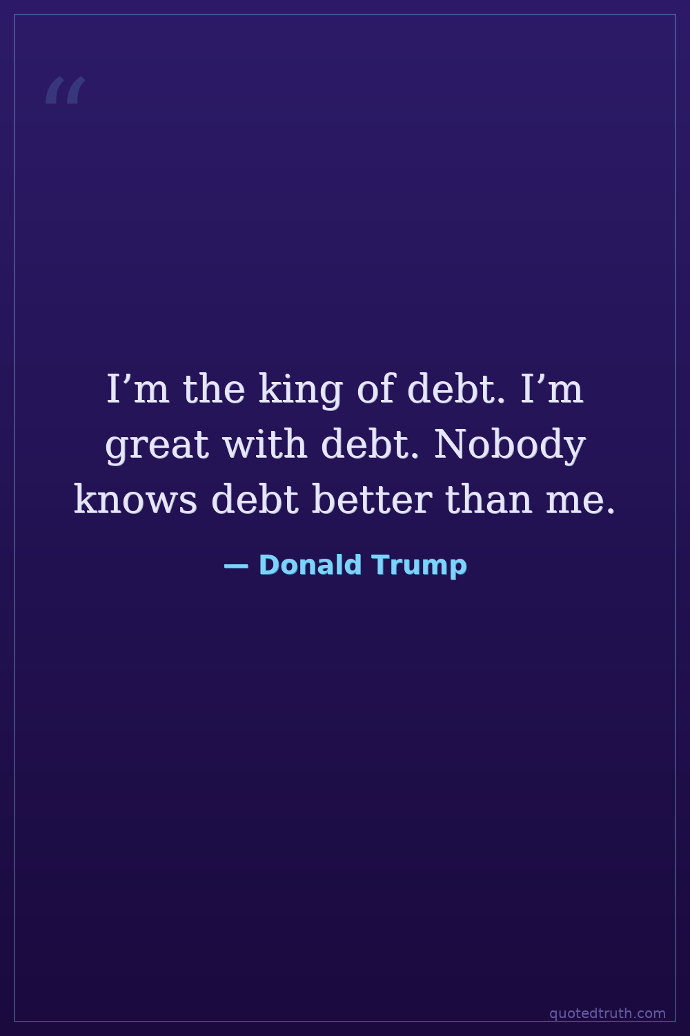 I’m the king of debt. I’m great with debt. Nobody knows debt better than me.