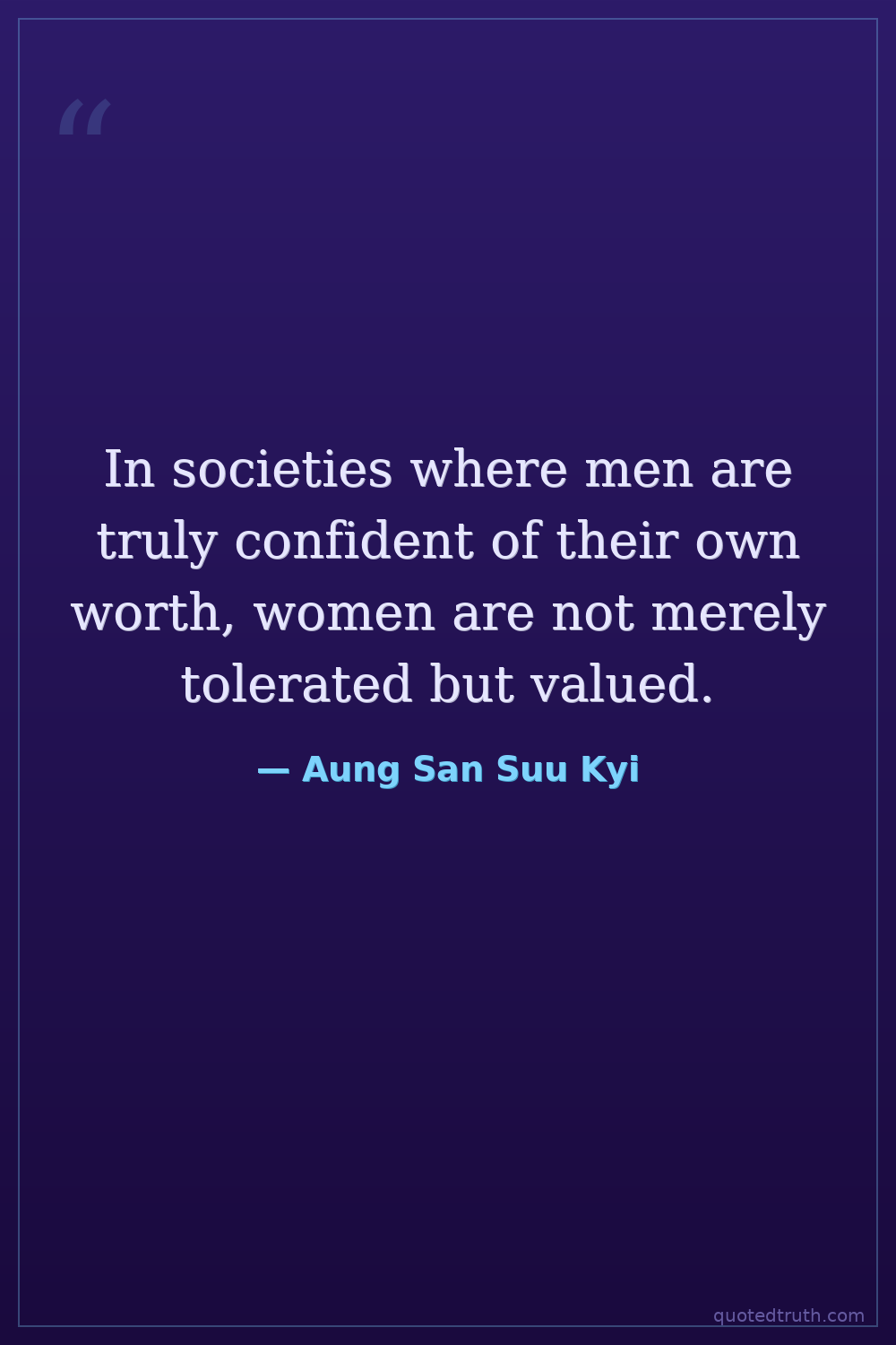 In societies where men are truly confident of their own worth, women are not merely tolerated but valued.