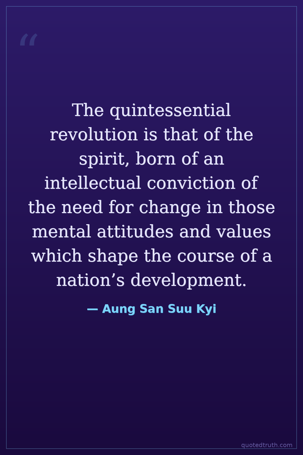 The quintessential revolution is that of the spirit, born of an intellectual conviction of the need for change in those mental attitudes and values which shape the course of a nation’s development.