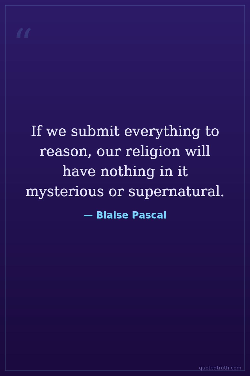 If we submit everything to reason, our religion will have nothing in it mysterious or supernatural.