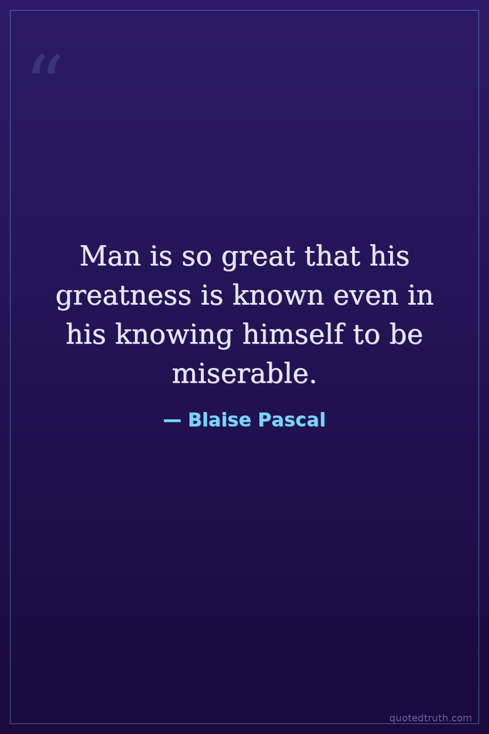 Man is so great that his greatness is known even in his knowing himself to be miserable.