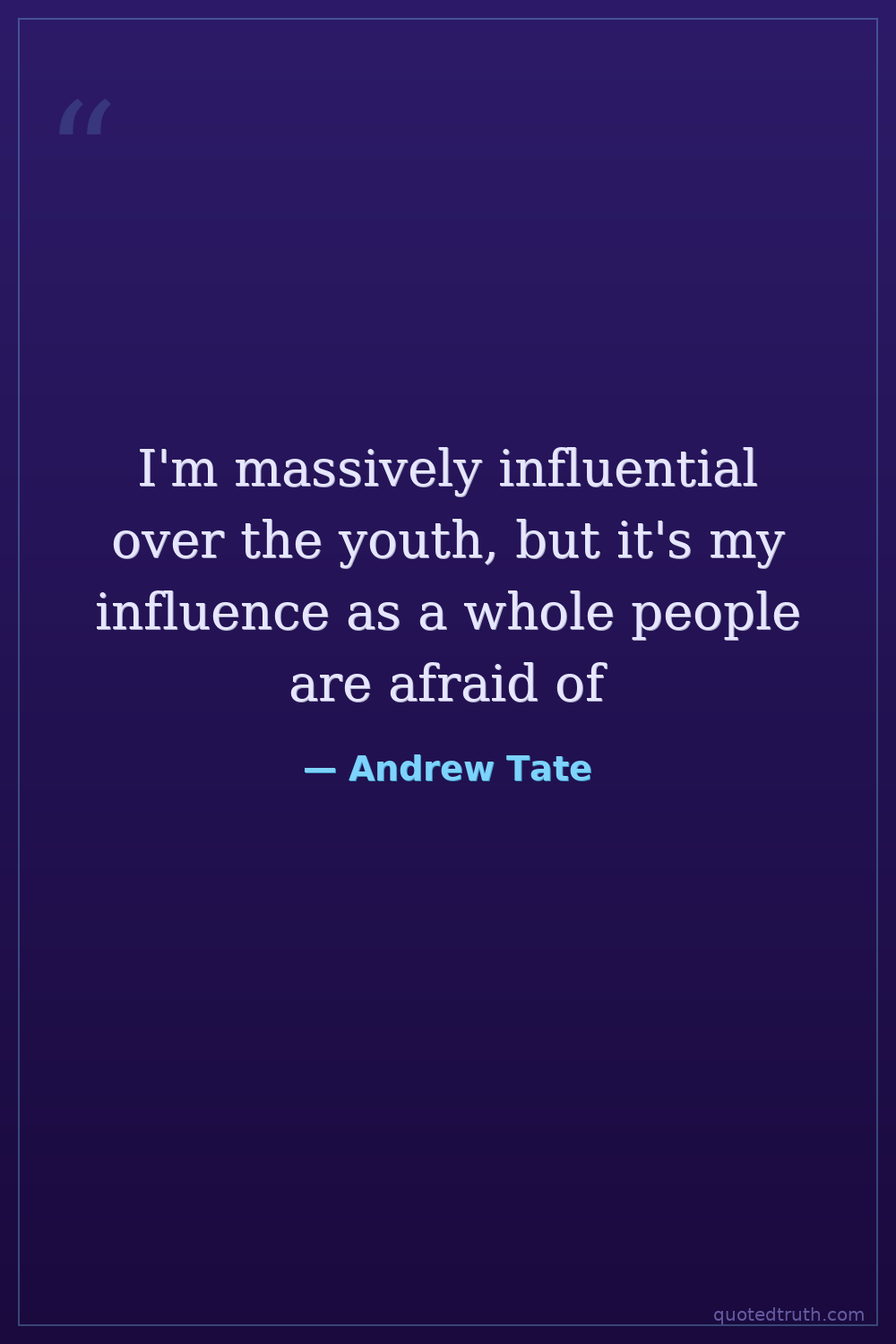 I'm massively influential over the youth, but it's my influence as a whole people are afraid of
