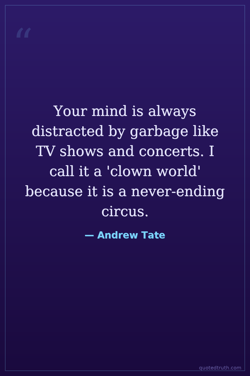 Your mind is always distracted by garbage like TV shows and concerts. I call it a 'clown world' because it is a never-ending circus.
