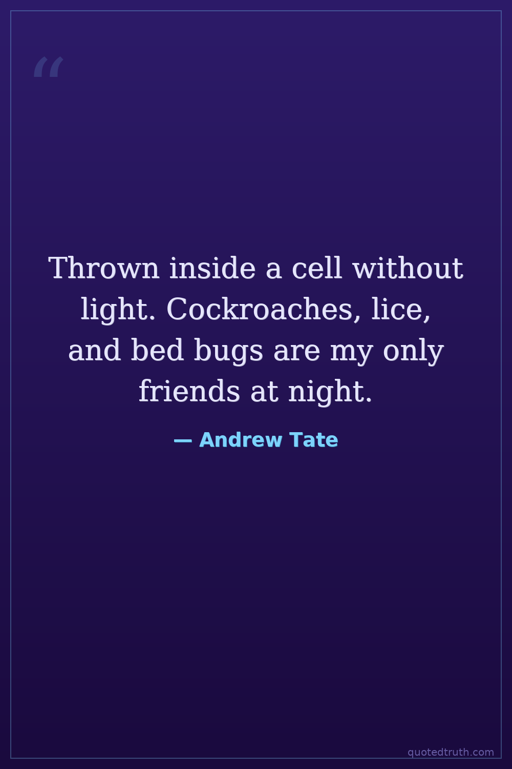 Thrown inside a cell without light. Cockroaches, lice, and bed bugs are my only friends at night.