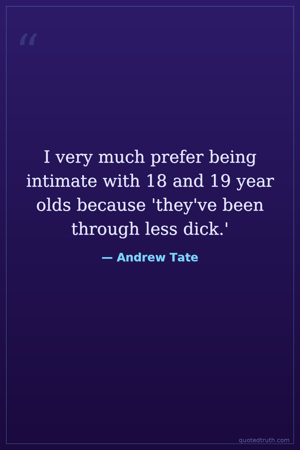 I very much prefer being intimate with 18 and 19 year olds because 'they've been through less dick.'