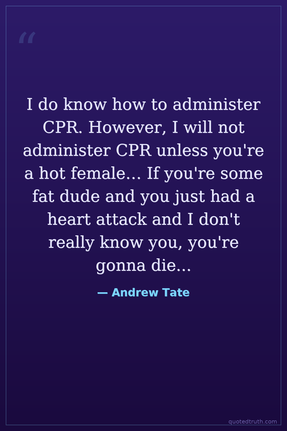 I do know how to administer CPR. However, I will not administer CPR unless you're a hot female… If you're some fat dude and you just had a heart attack and I don't really know you, you're gonna die… No, not even if you're a friend…