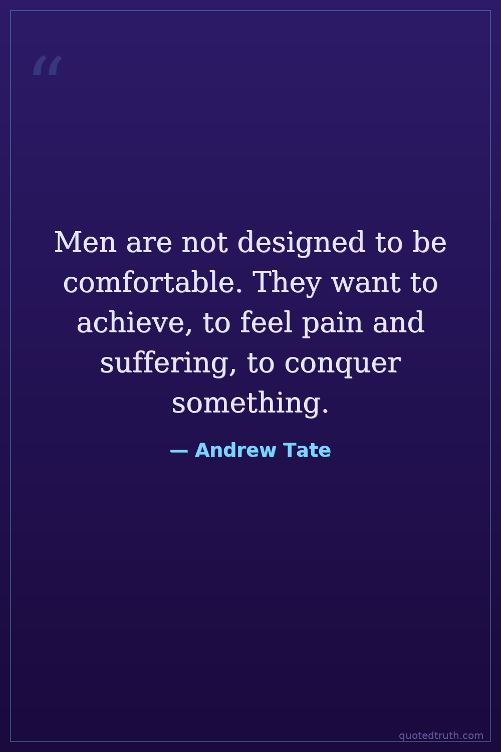 Men are not designed to be comfortable. They want to achieve, to feel pain and suffering, to conquer something.