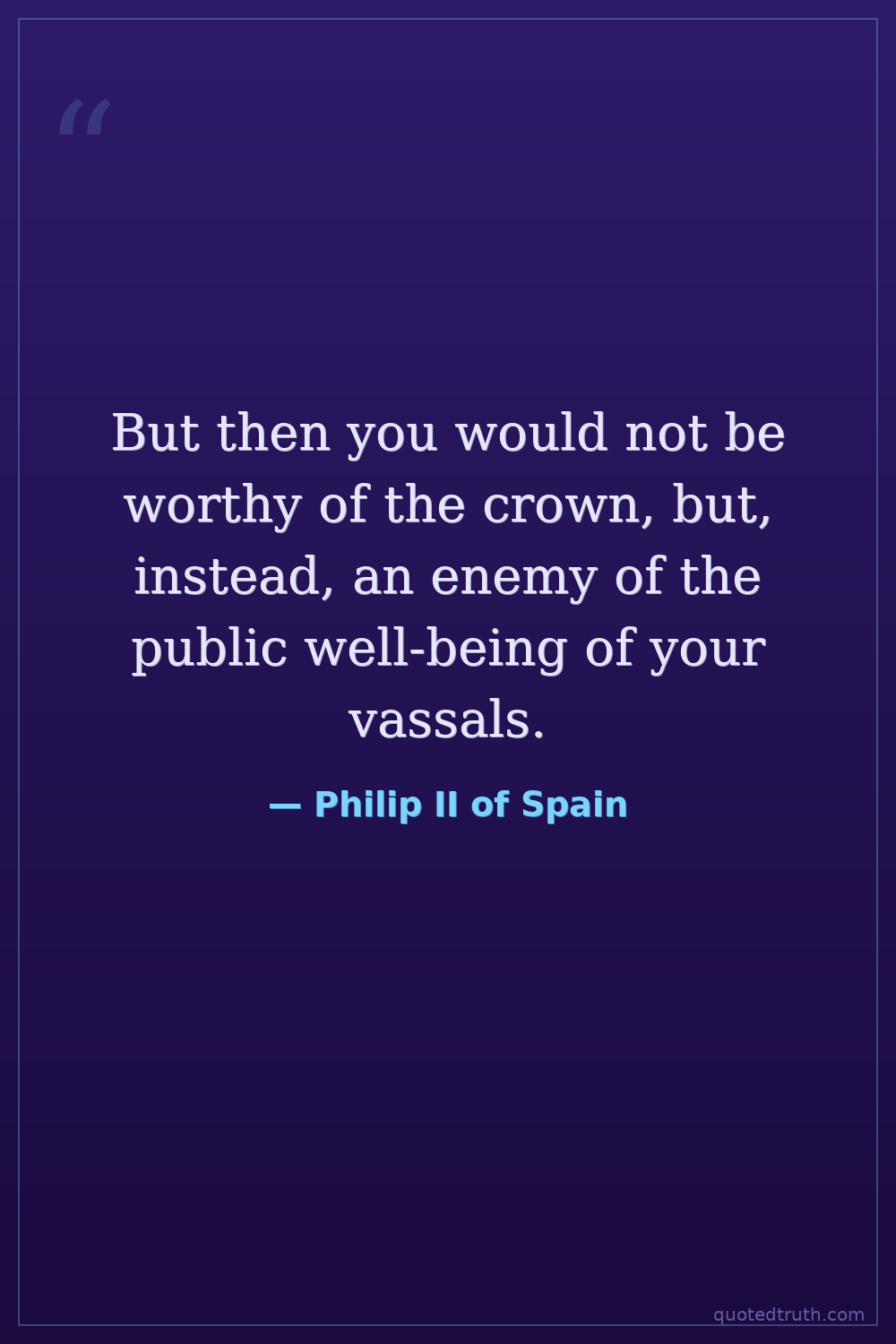 But then you would not be worthy of the crown, but, instead, an enemy of the public well-being of your vassals.
