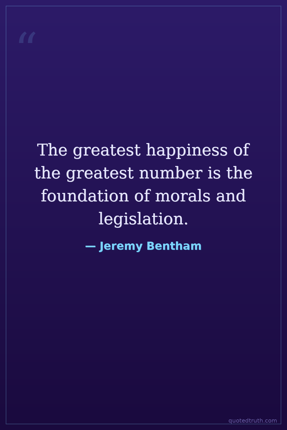 The greatest happiness of the greatest number is the foundation of morals and legislation.