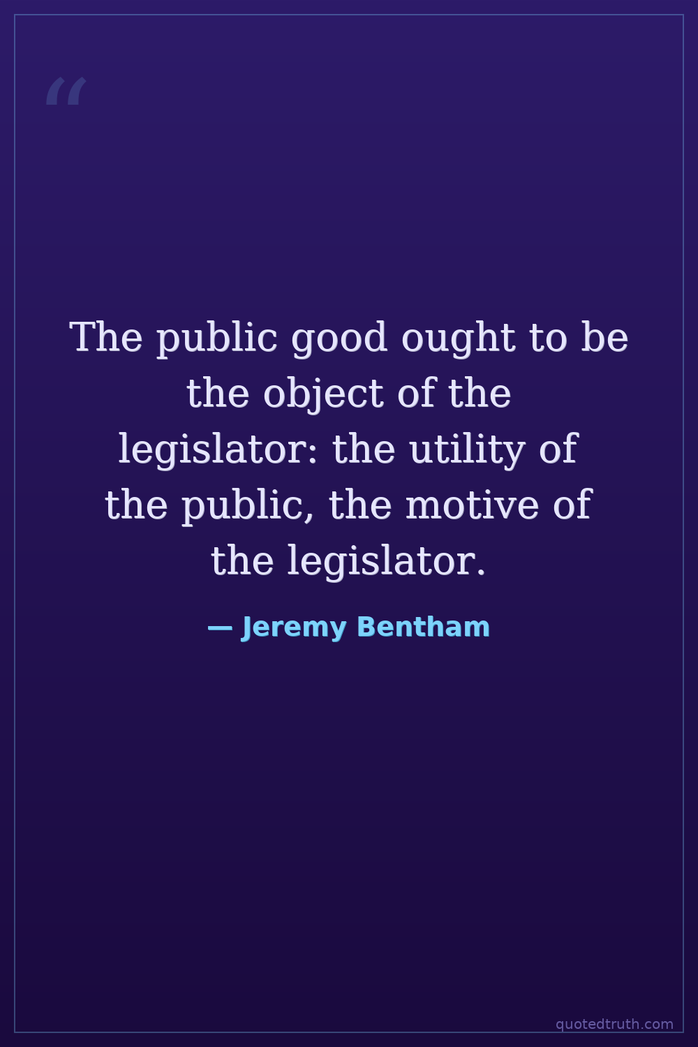The public good ought to be the object of the legislator: the utility of the public, the motive of the legislator.