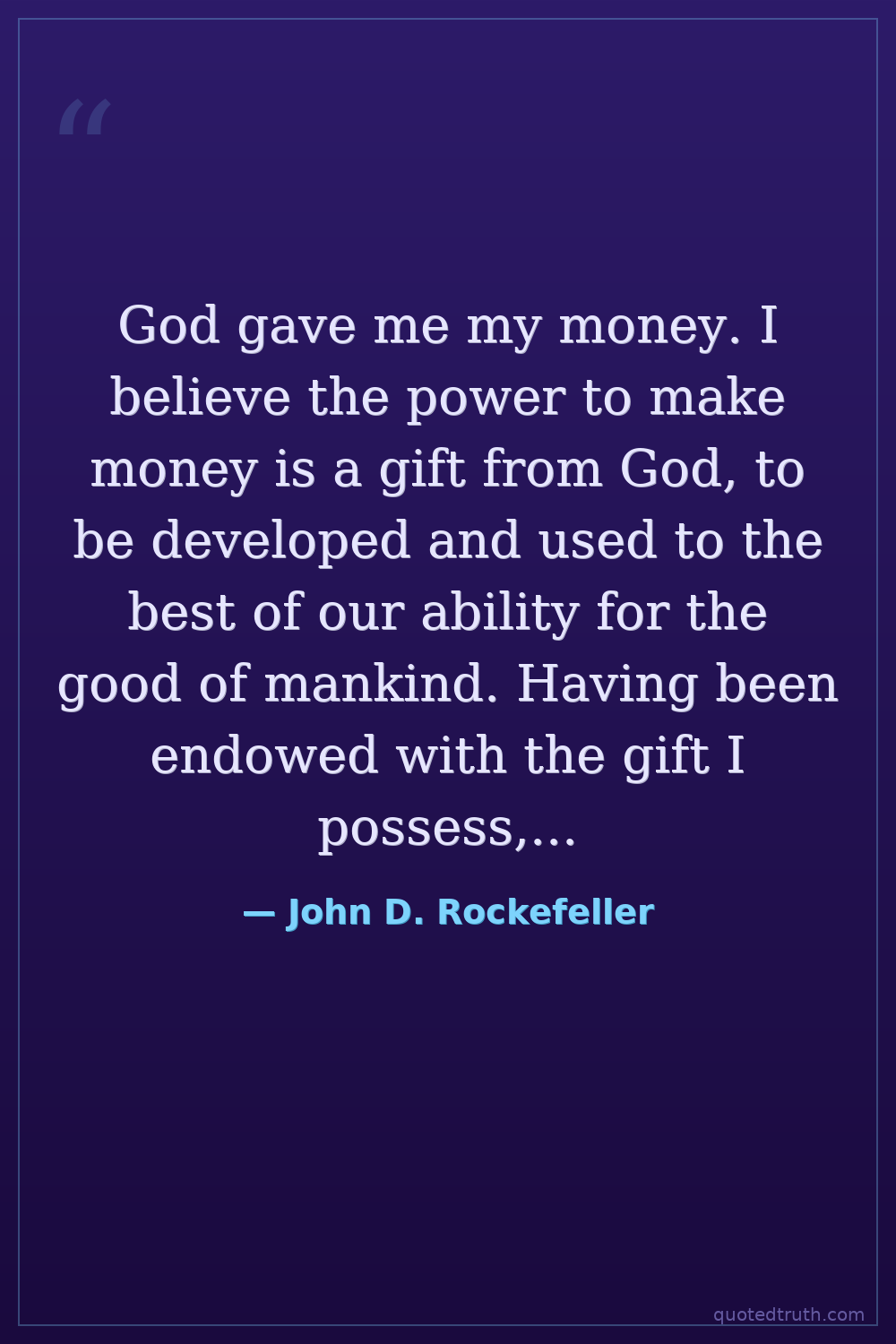 God gave me my money. I believe the power to make money is a gift from God, to be developed and used to the best of our ability for the good of mankind. Having been endowed with the gift I possess, I believe it is my duty to make money and still more money and to use the money I make for the good of my fellow man according to the dictates of my conscience.