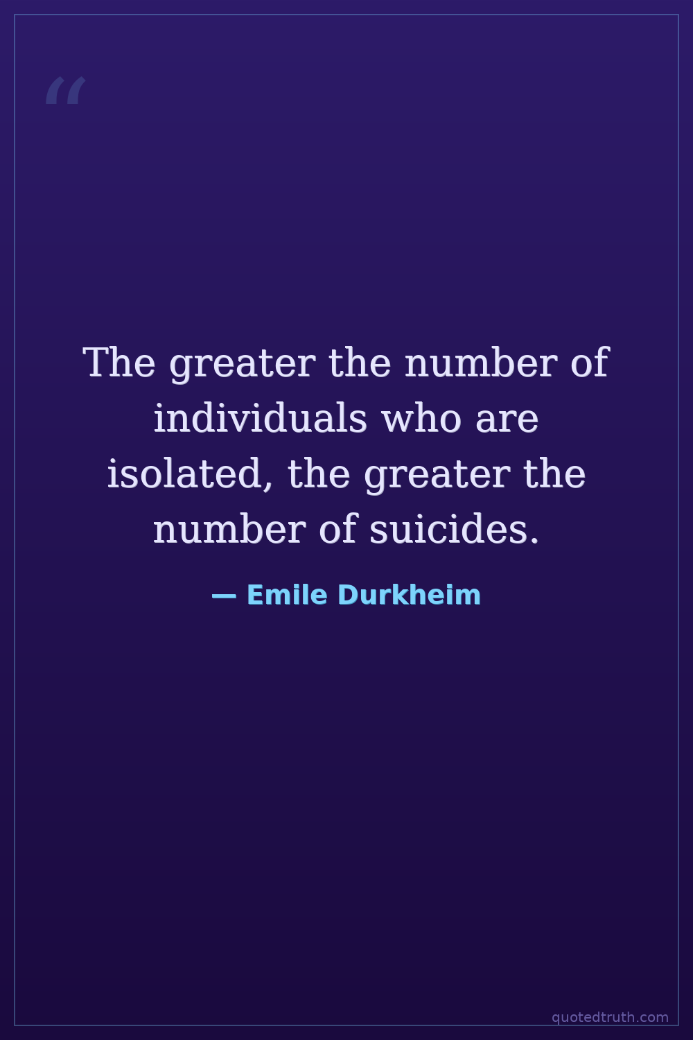 The greater the number of individuals who are isolated, the greater the number of suicides.