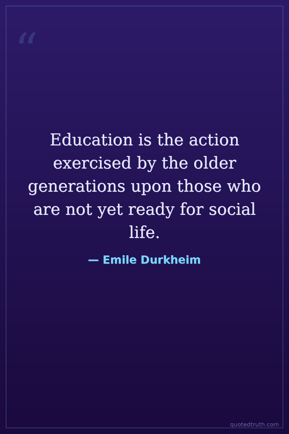 Education is the action exercised by the older generations upon those who are not yet ready for social life.