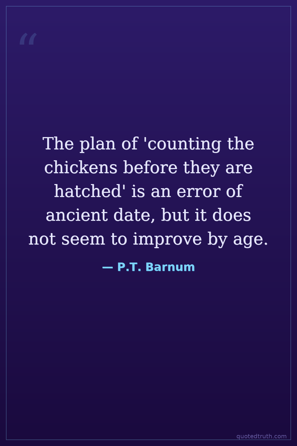 The plan of 'counting the chickens before they are hatched' is an error of ancient date, but it does not seem to improve by age.