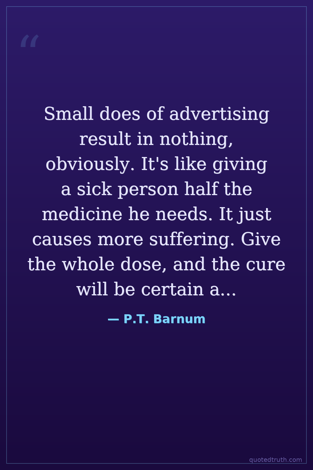 Small does of advertising result in nothing, obviously. It's like giving a sick person half the medicine he needs. It just causes more suffering. Give the whole dose, and the cure will be certain and decisive.