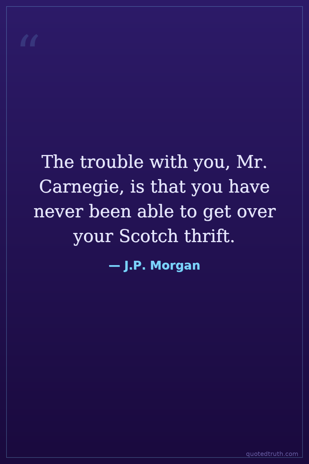 The trouble with you, Mr. Carnegie, is that you have never been able to get over your Scotch thrift.